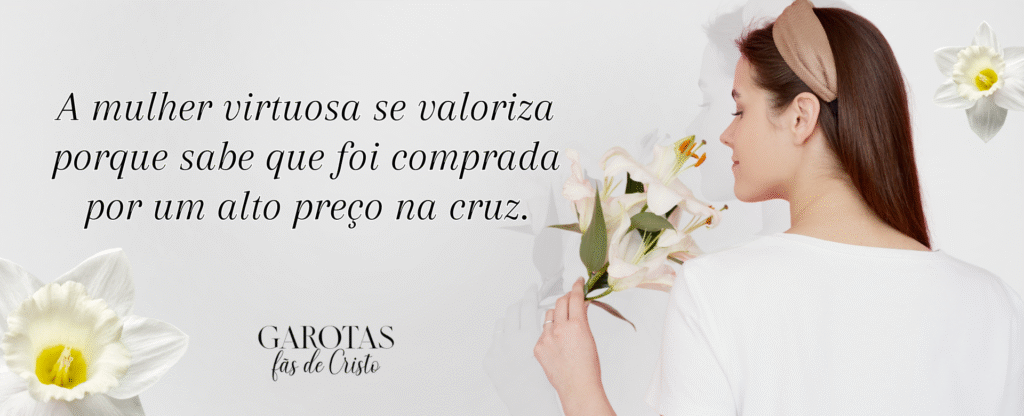 A mulher virtuosa se valoriza porque sabe que foi comprada por um alto preço na cruz. Ela não se vende a padrões deste mundo e nem permite que sua identidade seja moldada pela opinião alheia.